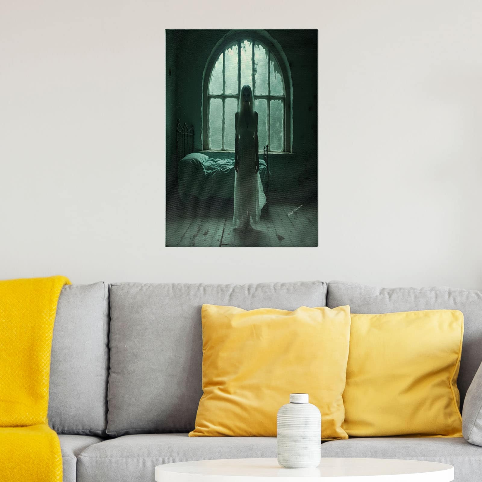 + Free ShippingImage with a dark, eerie, and gothic atmosphere. The central figure is a ghostly woman with long, flowing, white hair and a pale, ethereal complexion.