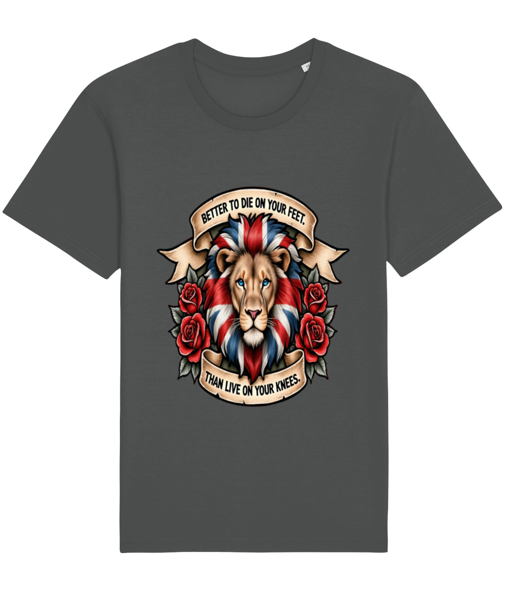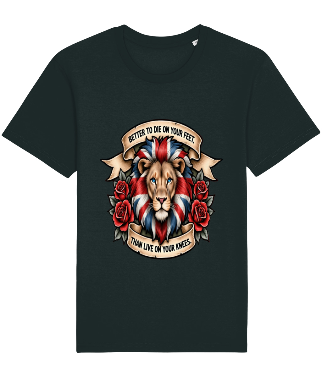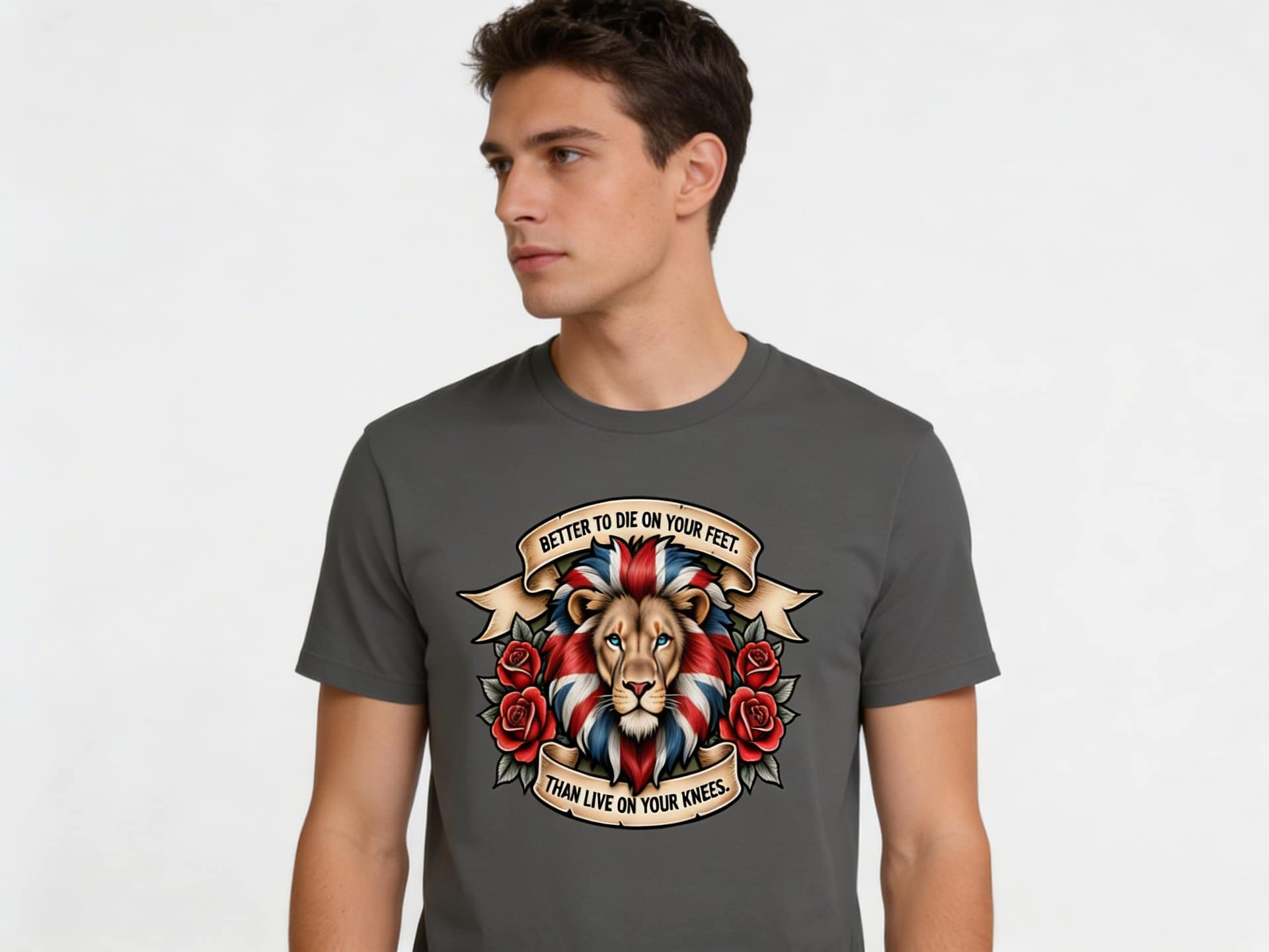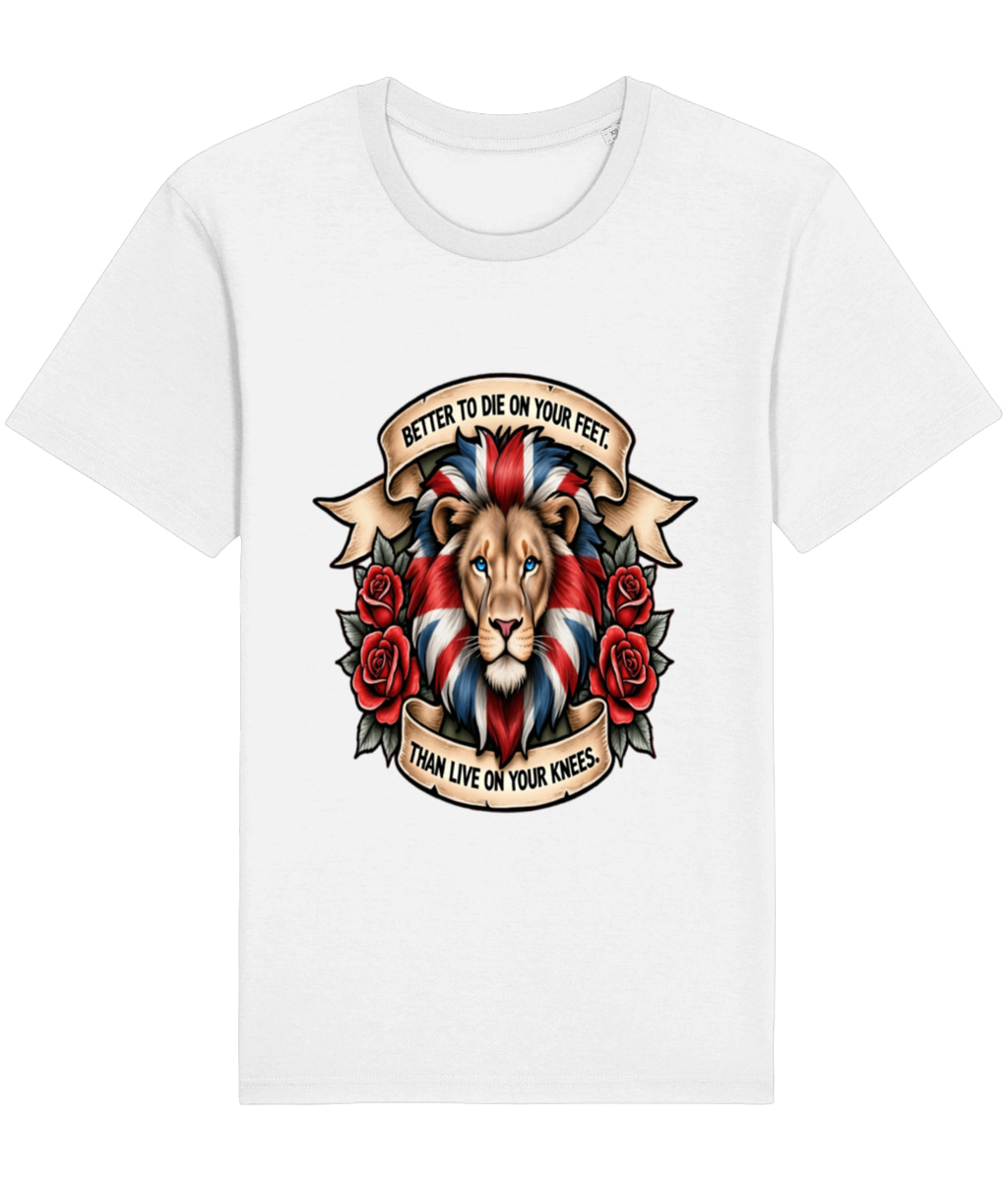 This unisex 100% organic cotton T-shirt features a patriotic lion motif, making it a stylish and sustainable choice for those looking for a happy and breathable top. The short sleeve design with a round neck and logo accents adds a touch of uniqueness to the shirt, perfect for all seasons. With a regular fit and easy care instructions, this T-shirt from Paul Harrison designs is a versatile addition to any wardrobe, representing the theme of patriotism with a friendly character. Made in the United Kingdom, this shirt is a great choice for anyone who values style, comfort, and eco-friendliness.
